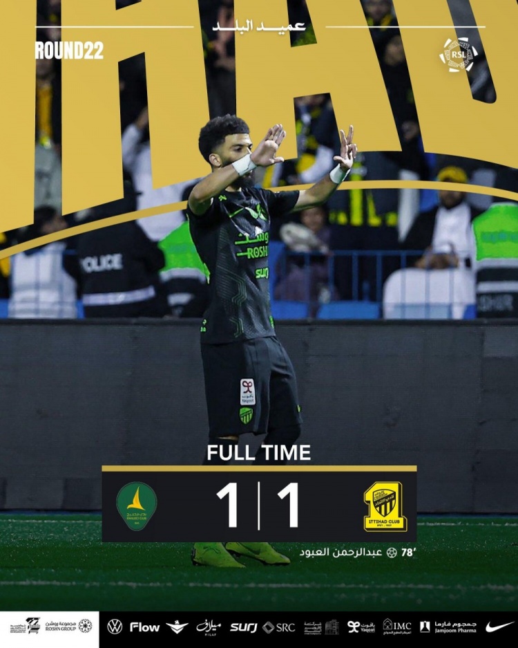 吉達聯(lián)合客場1-1戰(zhàn)平卡利杰,聯(lián)賽4連勝終結(jié)。
