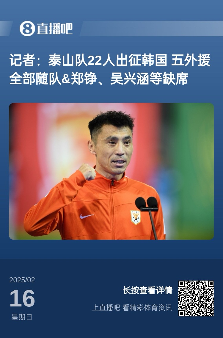 2025-02-19 20:25:27太突然!泰山16日全隊抵達韓國&昨日唐田參加發布會 今日亞冠退賽