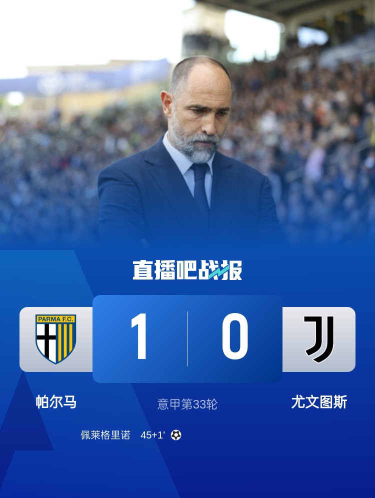 4月24日訊 意甲第33輪比賽,尤文客場0-1不敵帕爾馬。