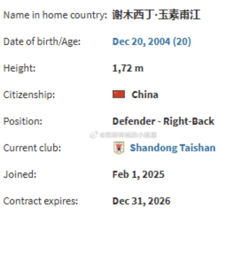 2025-02-19 20:25:33德轉顯示,因年齡造假被禁賽三個月的謝木西丁就是泰山的玉蘇甫