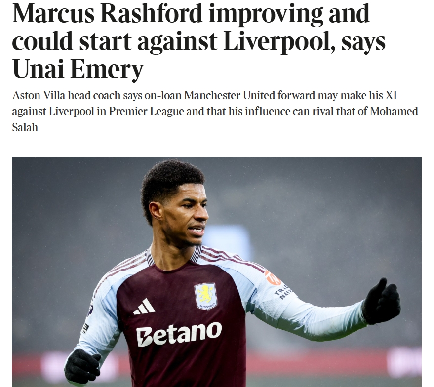 2025-02-19 20:25:36埃梅里:今晚戰利物浦,拉什福德&阿森西奧有望首發