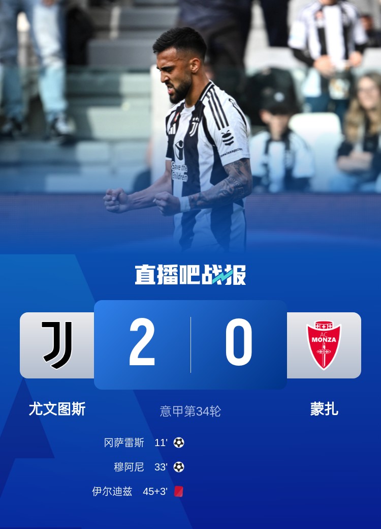岡薩雷斯破門(mén),穆阿尼建功,伊爾迪茲肘擊染紅,尤文2-0擊敗蒙扎,先賽暫時(shí)超越博洛尼亞,升至意甲第4!