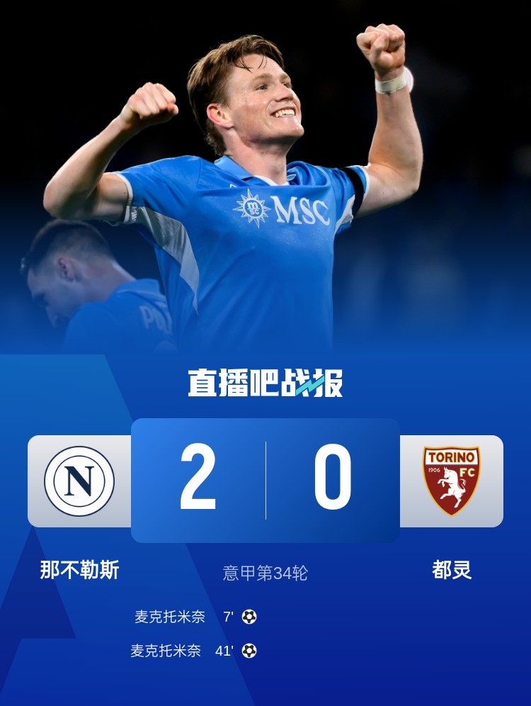 麥克托米奈梅開(kāi)二度,那不勒斯2-0擊敗都靈,取得聯(lián)賽3連勝,以3分優(yōu)勢(shì)領(lǐng)跑意甲。