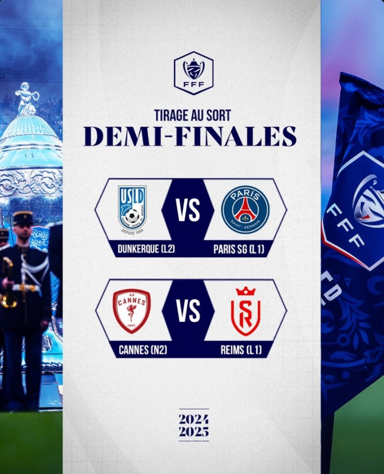 2025-02-28 05:00:09法國杯半決賽對陣:巴黎VS敦刻爾克、蘭斯VS戛納