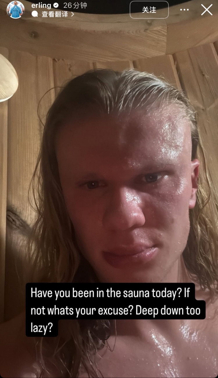 2025-02-28 05:00:11今天你蒸了嗎?哈蘭德更新社媒,曬出自己蒸桑拿的照片