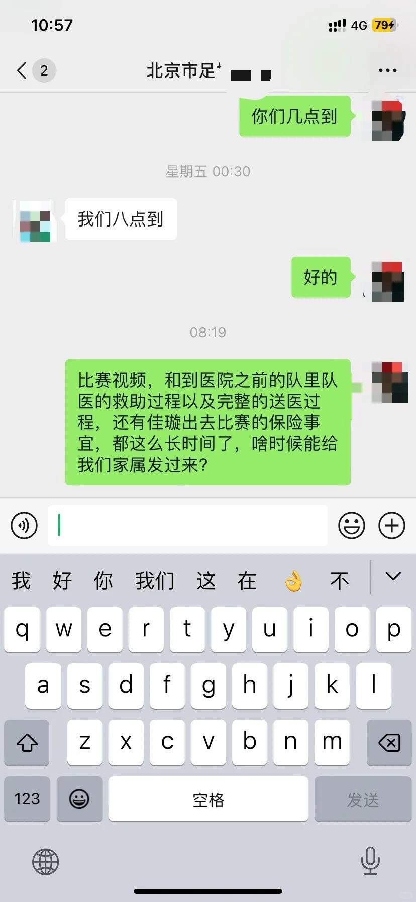 嘉璇目前病情依舊沒有好轉,現在也只是維持身體機能,我們也逐漸接受了現實,住院這么多天,北京足協只有第一天轉運的時候來了些人,之后再也沒有見過他們的人,而且家屬一直追要的比賽視頻,和到醫院之前的隊里隊醫的救助過程以及送醫過程,還有嘉璇西班牙比賽的保險資料,被一拖再拖,遲遲沒有得到答復!家屬只想知道一個真相,為什么這么難?