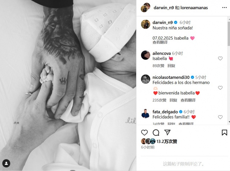 努涅斯表示道:“我們的夢中女孩,2025年2月7日,伊莎貝拉????”。