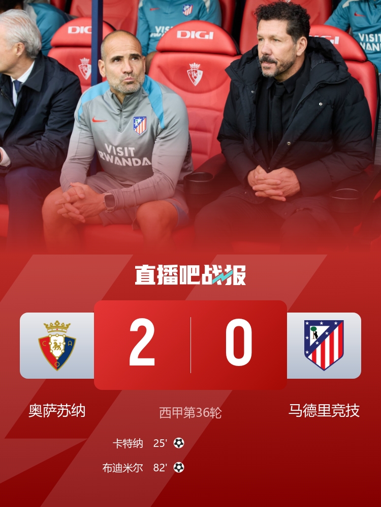 馬競客場0-2不敵奧薩蘇納,馬競客場連續(xù)3輪不勝。