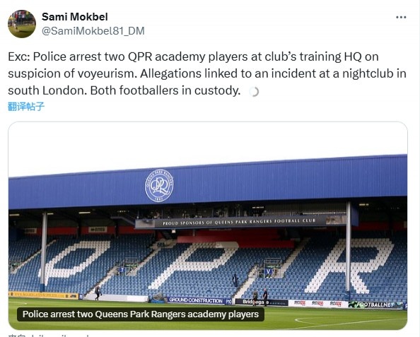 2025-02-28 15:01:08郵報:英冠QPR兩名球員訓練時被警方帶走,涉嫌偷窺罪