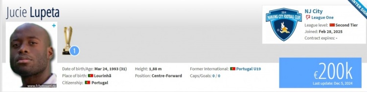 2025-02-28 20:05:35德轉信息顯示,31歲葡萄牙前鋒盧佩塔自由身加盟南京城市