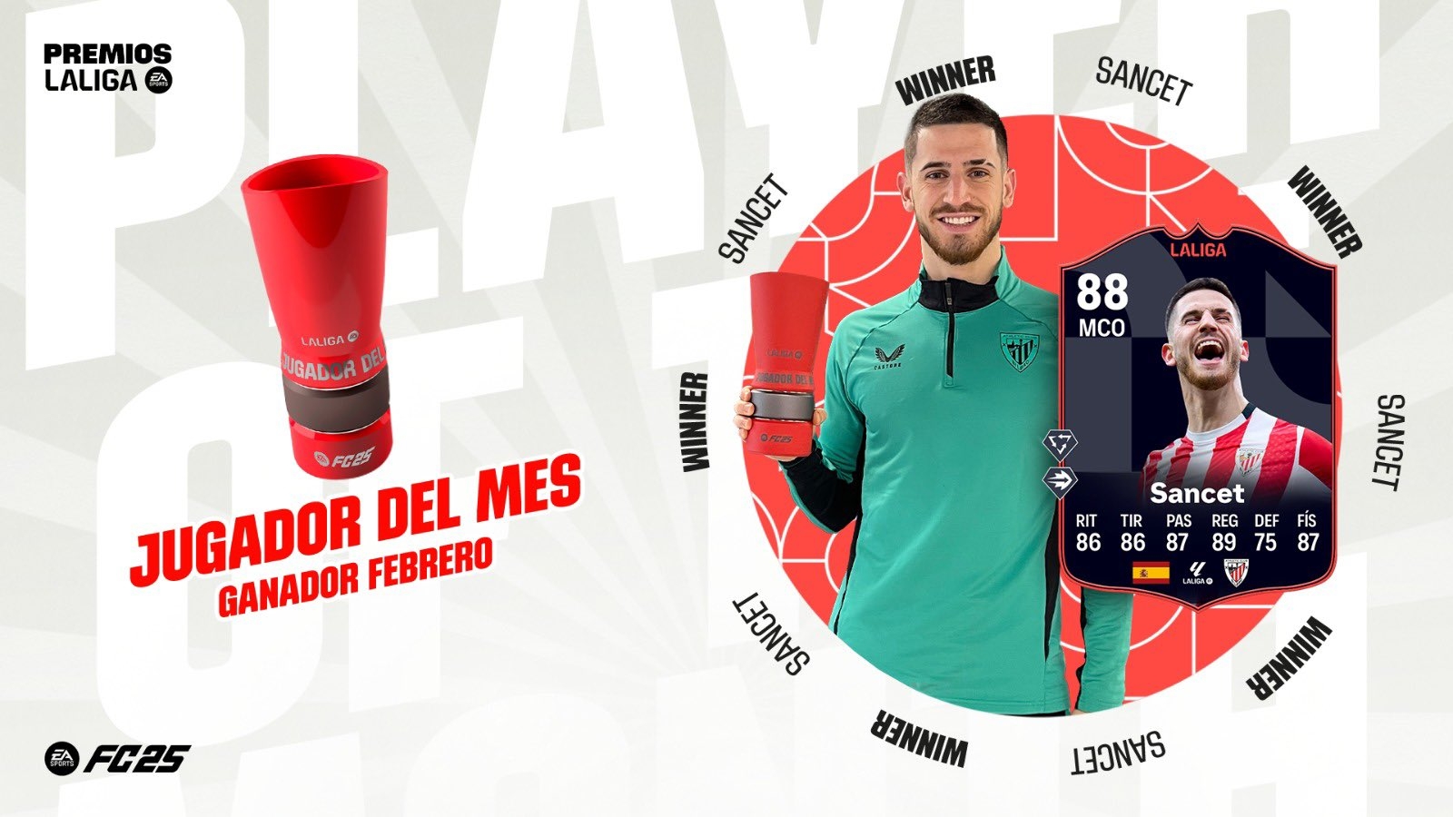 2025-03-01 05:00:34力壓姆巴佩&安東尼!官方:畢巴中場桑謝特當選2月西甲最佳球員