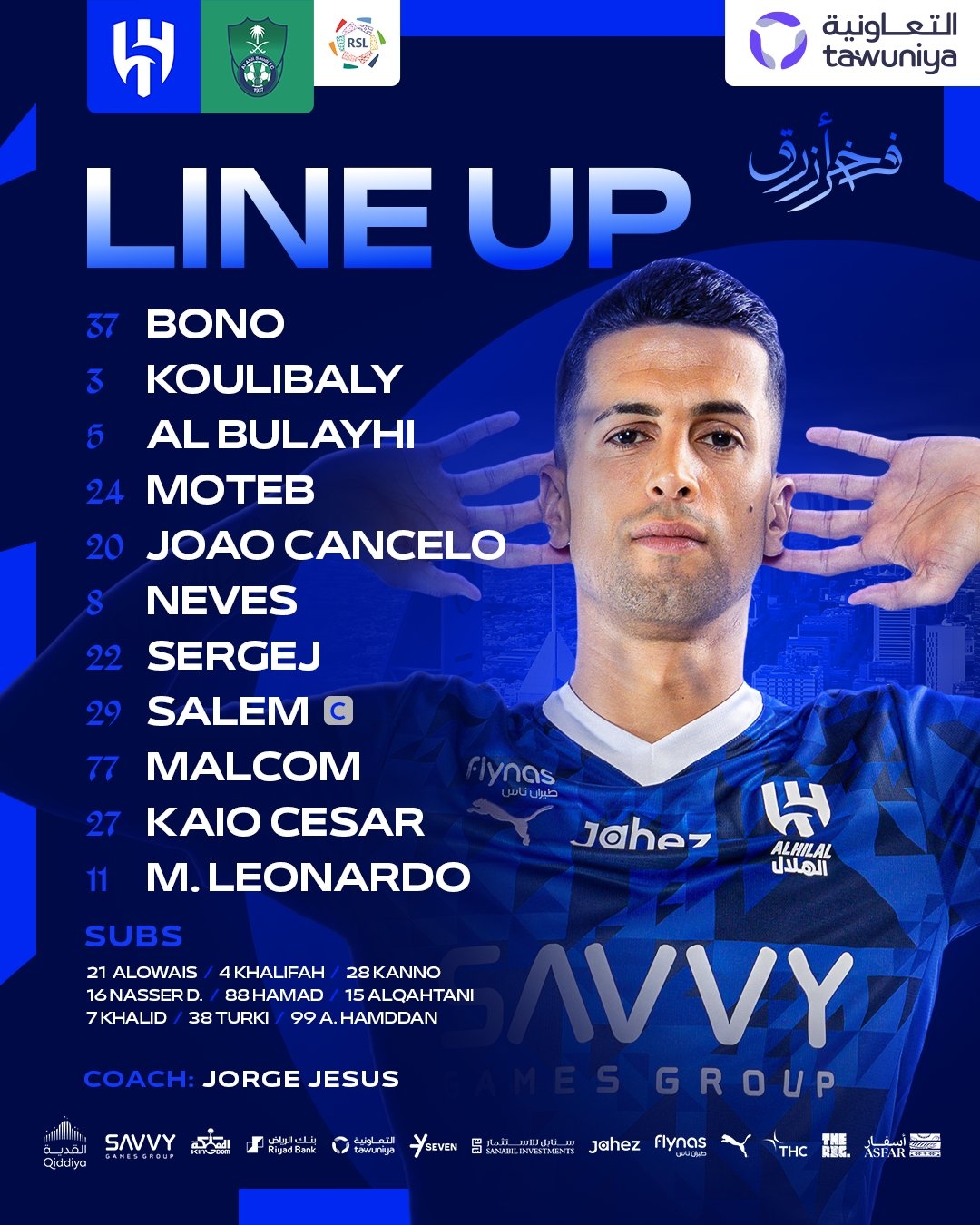 2025-03-01 05:00:38利雅得新月聯賽首發:坎塞洛、內維斯、米林科維奇、馬爾科姆先發