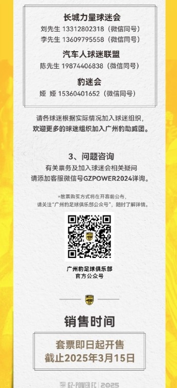 2025-03-01 15:01:06廣州豹新賽季主場票務公告:個人套票599元/賽季,散票最高100元