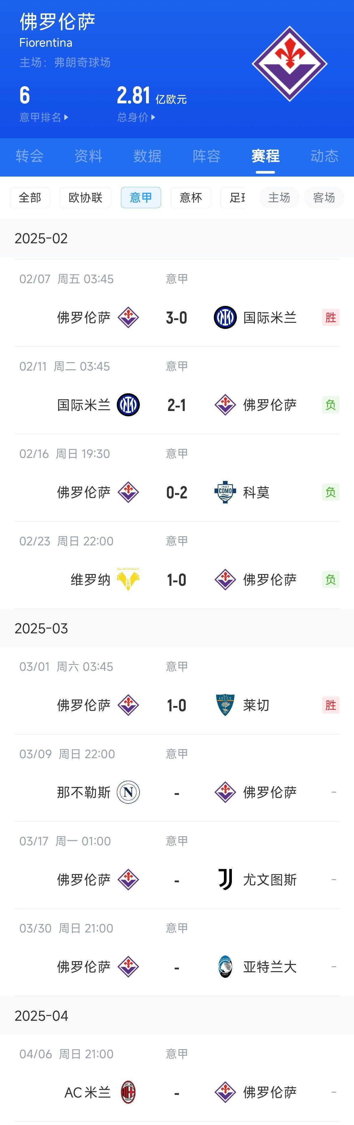 2025-03-01 15:01:42冠軍判官?佛羅倫薩未來(lái)3輪分別打意甲2/3/4,此前曾3-0第1名國(guó)米