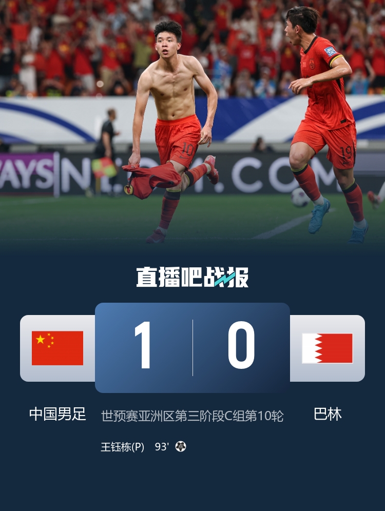 國(guó)足主場(chǎng)1-0絕殺+雙殺巴林贏下榮譽(yù)戰(zhàn),王鈺棟處子球,國(guó)足終結(jié)世預(yù)賽4連敗,積9分位居小組倒數(shù)第二收官。