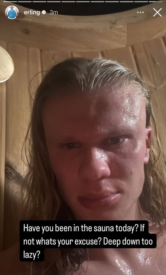哈蘭德曬出自己蒸桑拿的照片,并配文:“你今天蒸桑拿了嗎?如果沒(méi)有,你的借口是什么??jī)?nèi)心深處太懶?”