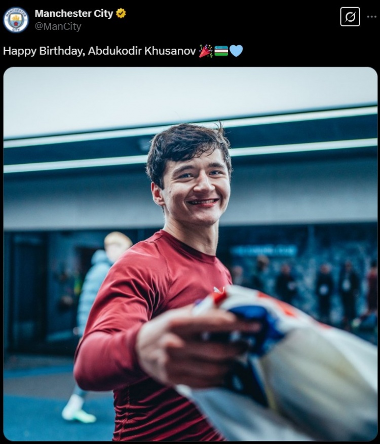 2025-03-01 20:25:22出生于2月29日&4年一次生日,曼城官方為胡桑諾夫送上祝福