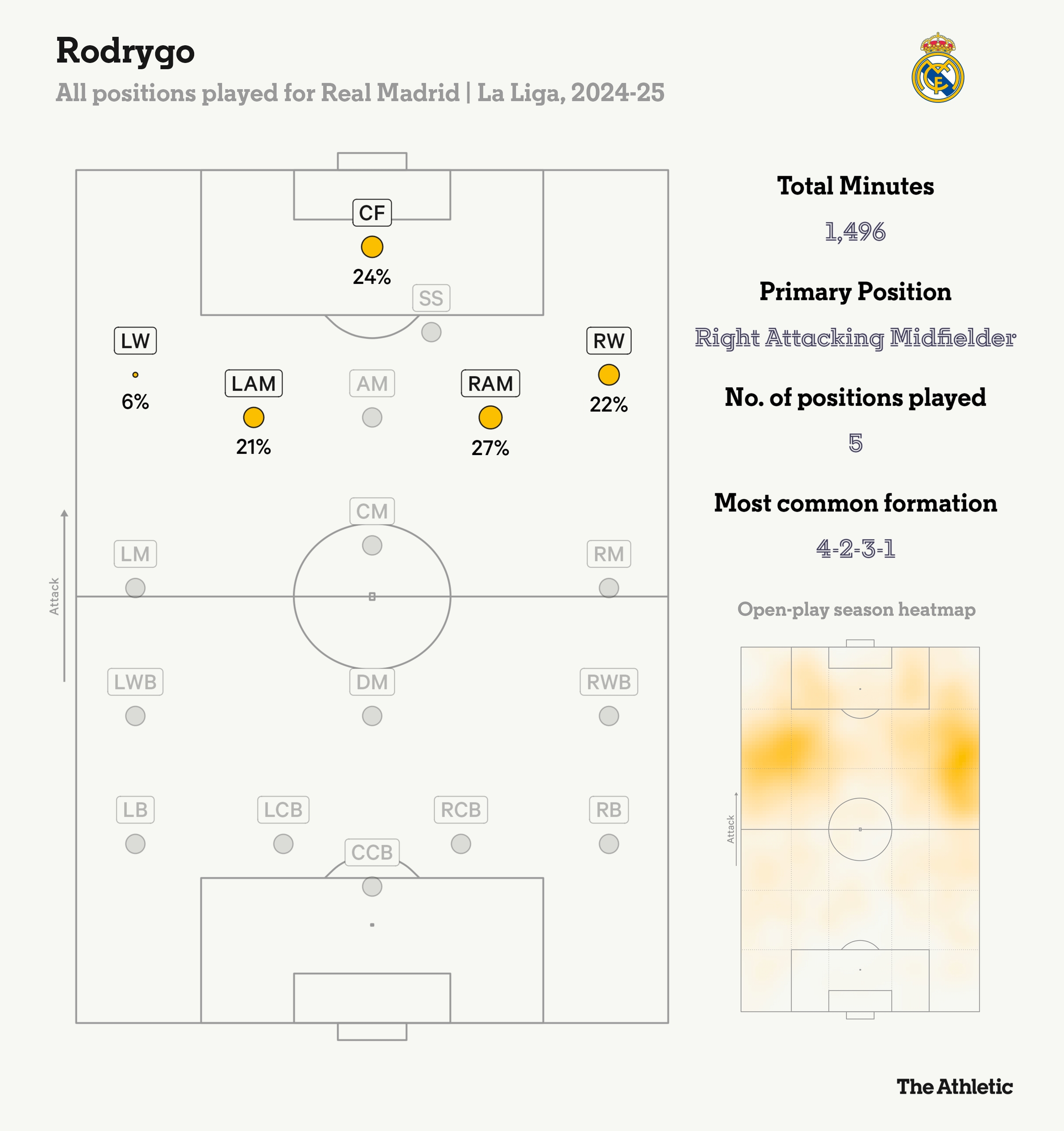 2025-03-01 20:28:04羅德里戈本賽季在皇馬踢過五個位置,居右的進攻型中場踢的最多