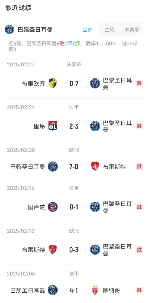 2025-02-27 07:25:372025年02月27日 法國杯-巴黎7-0大勝布里歐齊 貢薩洛-拉莫斯3射1傳杜埃1射2傳