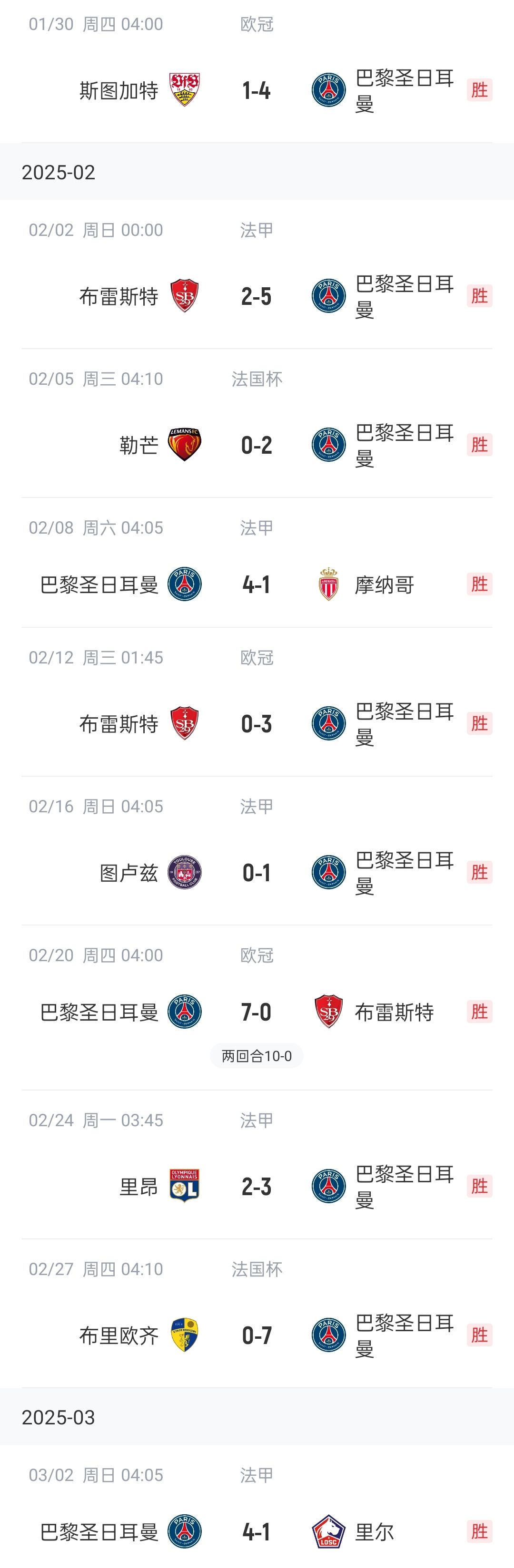 2025-03-02 10:11:00下場阻擊利物浦?巴黎豪取10連勝&22場不敗,近10場狂轟40球