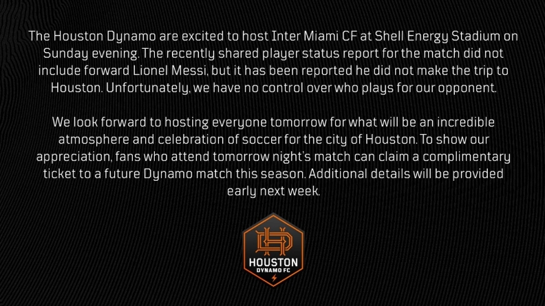 2025-03-02 16:10:45主場戰邁阿密但梅西輪休!休斯頓官方:觀賽球迷可免費獲1張門票