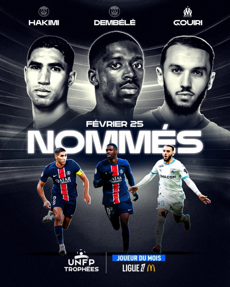 2025-03-02 21:44:29法甲2月最佳球員候選:登貝萊6球、阿什拉夫2球、古伊里2球3助