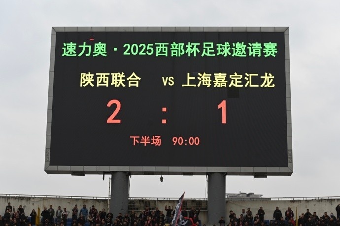 最終全場比賽結束,陜西聯(lián)合主場2:1戰(zhàn)勝上海嘉定匯龍,贏得速力奧·2025西部杯足球邀請賽首勝!