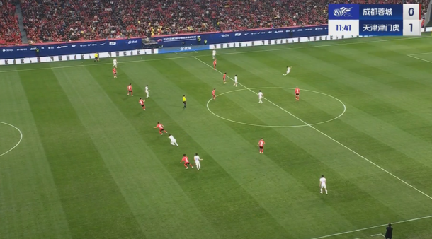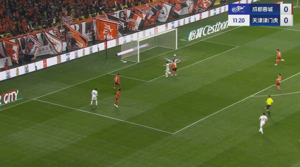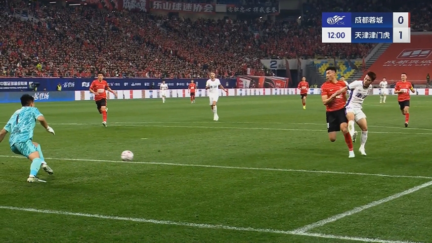 2025-03-02 21:45:00半場-胡荷韜助攻韋世豪頭球吊射破門周定洋染紅 蓉城暫1-1津門虎
