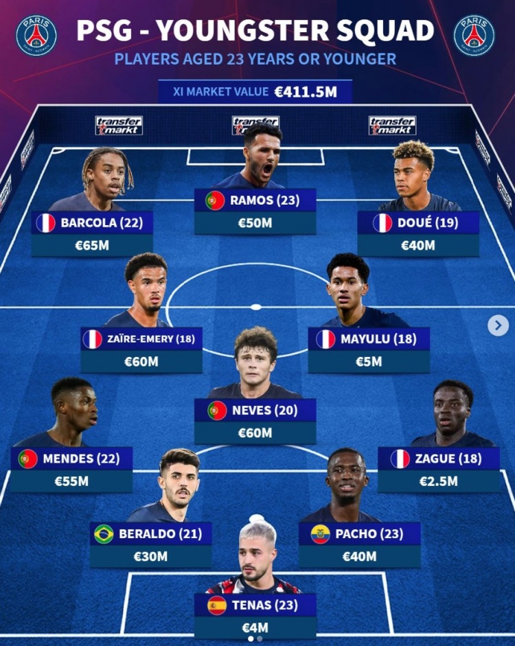 2025-03-02 21:45:25青春風暴!德轉列巴黎U23陣:總價4.12億歐,巴爾科拉&內維斯領銜