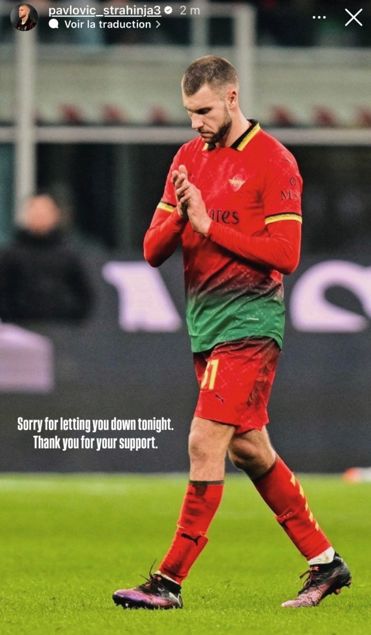 2025-03-03 10:14:52身后放鏟染紅!帕夫洛維奇社媒致歉:很抱歉今晚讓球迷們失望了
