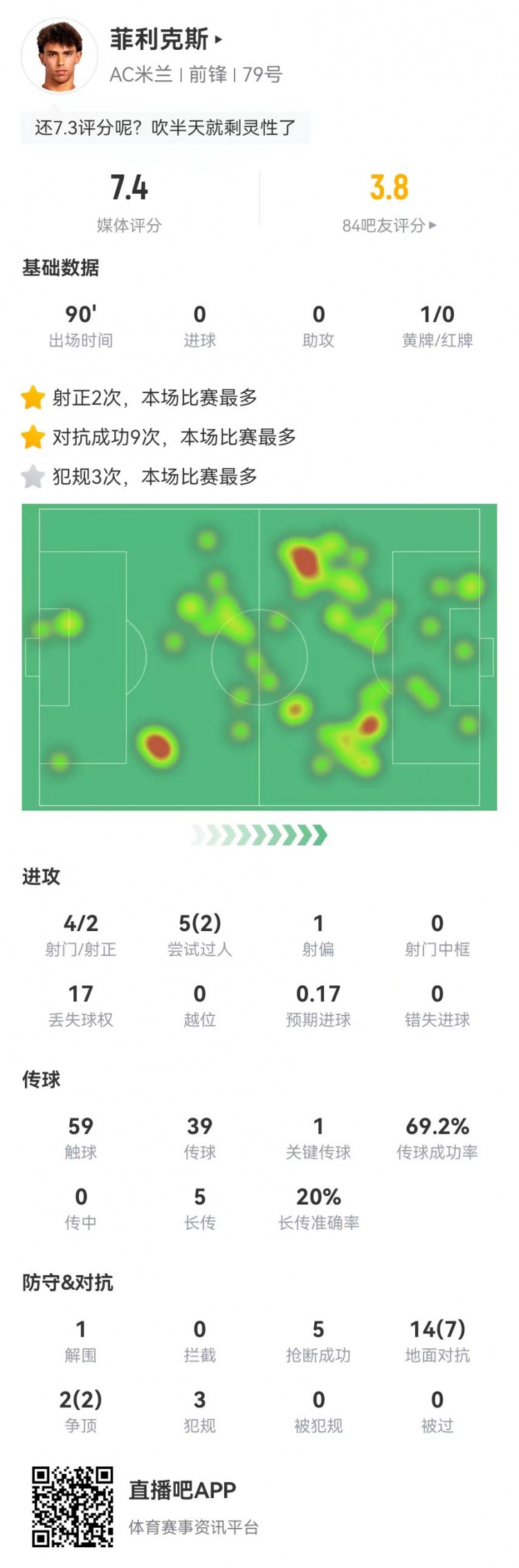 2025-02-19 20:28:53菲利克斯本場(chǎng)4射2正+1關(guān)鍵傳球 17丟失球權(quán) 3犯規(guī)5搶斷 獲評(píng)7.4分