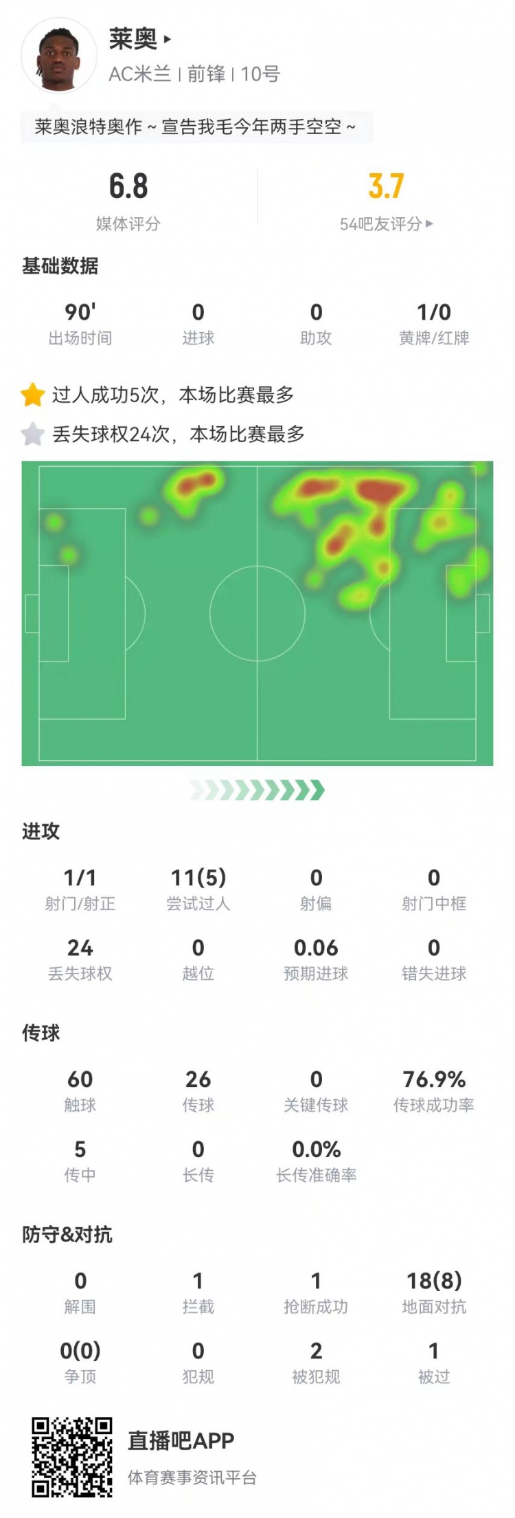 2025-02-19 20:28:56低迷!萊奧本場1射0關鍵傳球 5傳中0成功 24丟失球權 11對抗5成功