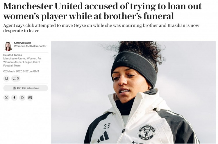 2025-03-03 20:04:51男女足都一團糟?電訊報:曼聯女足試圖在球員回家奔喪時將其外租