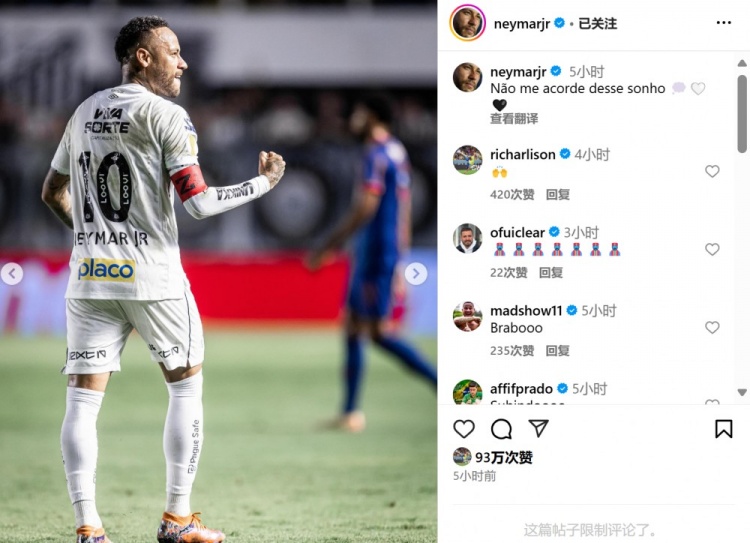 2025-03-03 20:05:47加盟桑托斯7場3球3助,內馬爾社媒曬照:別把我從夢中叫醒