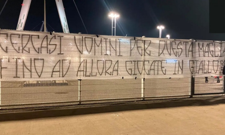 尤文球迷組織先是在球場(chǎng)集結(jié),隨后前往球隊(duì)賽前集訓(xùn)地表達(dá)不滿。球迷在球場(chǎng)外掛出兩條批評(píng)性橫幅,一條強(qiáng)調(diào)“你們所有人都只是過(guò)客,而我們是足球的歷史”,另一條則直接批評(píng)球員“為這件球衣尋找真男人”。