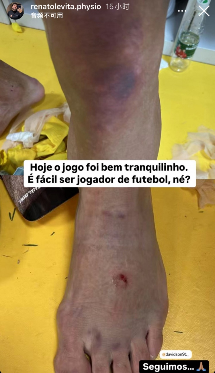 2025-03-04 11:35:28西海岸理療師曬戴維森腿部傷勢照:當足球運動員很容易,對吧?