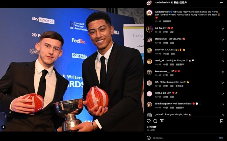 2025-03-04 17:48:47官方:小貝林厄姆獲英格蘭東北部足球作家協會年度最佳年輕球員獎