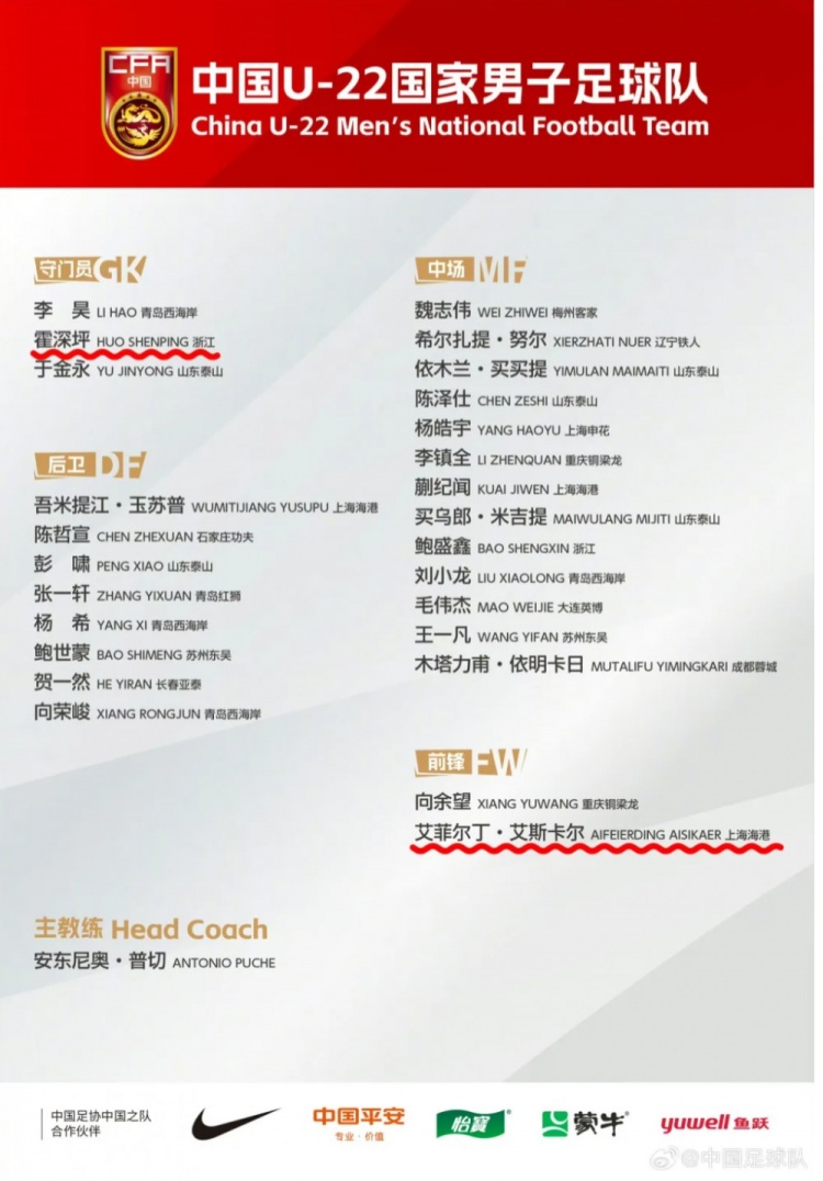 恭喜!恒大足校培養球員霍深坪、艾菲爾丁入選U22國足