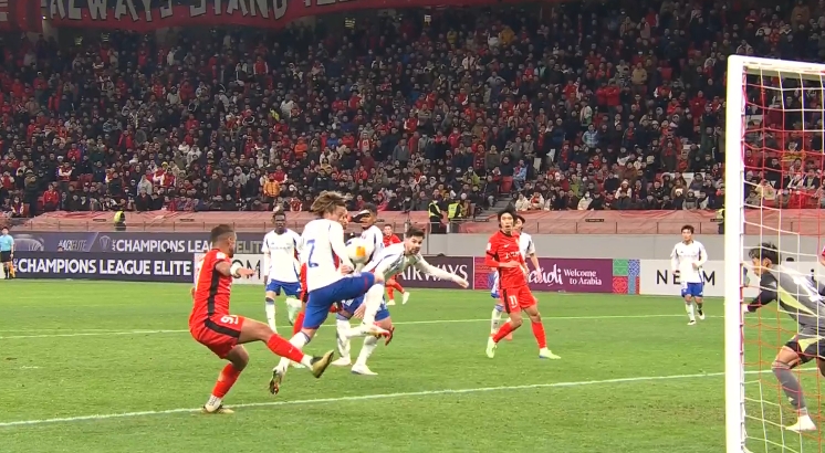 根據(jù)賽后鏡頭可以看到,韓國(guó)籍主裁金鐘赫向海港球員解釋此球未判的理由是,球先擊中了橫濱球員的大腿,才反彈到手上,因此按照新規(guī)不會(huì)判手球。