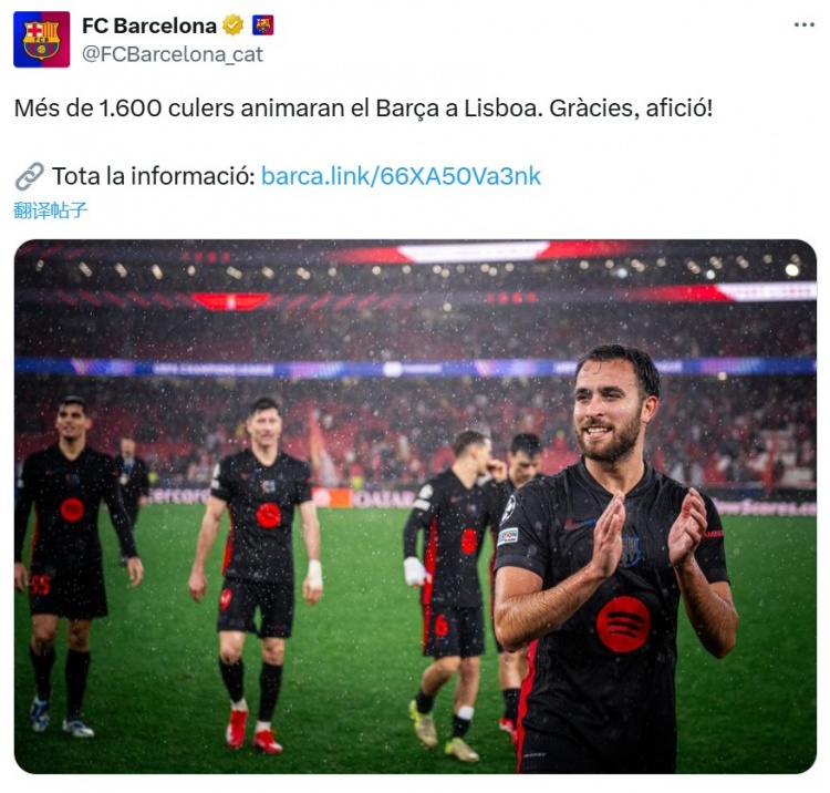2025-03-04 23:29:00巴薩官方:超過1600名巴薩球迷將在里斯本為球隊加油,感謝球迷們