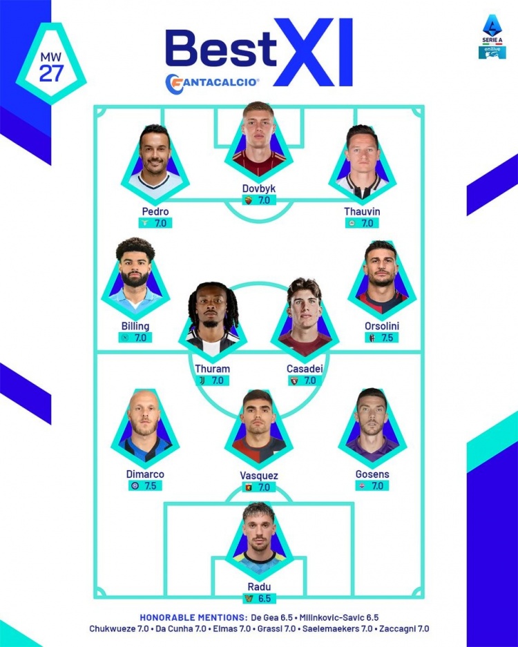 2025-03-05 01:45:02意甲本輪官方最佳陣:K-圖拉姆、迪馬爾科領(lǐng)銜,佩德羅在列