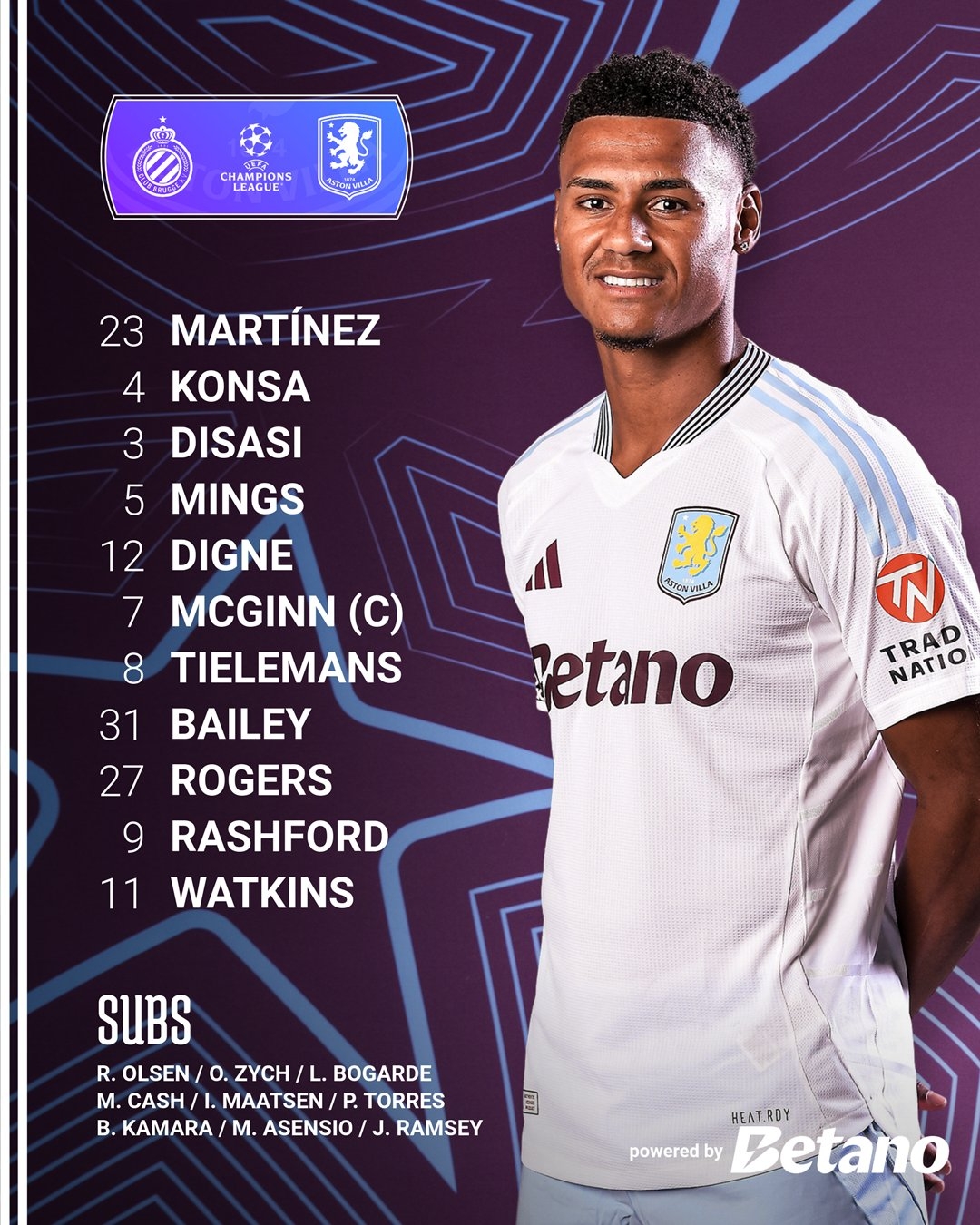 2025-03-05 01:45:17拉師傅出戰歐冠淘汰賽!維拉vs布魯日:拉什福德、沃特金斯先發