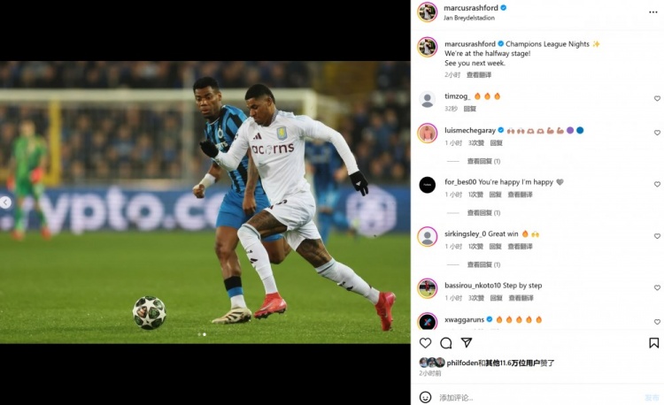 2025-03-05 06:52:34拉什福德社媒曬照:歐冠之夜,我們距離晉級還有一半路程!