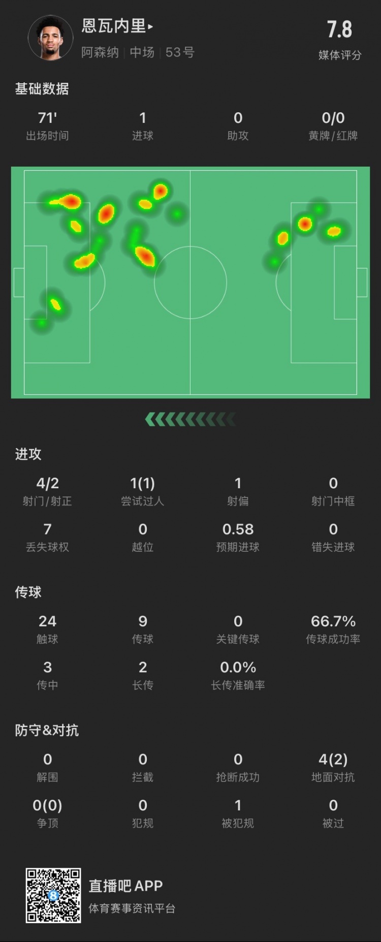 2025-03-05 06:55:4717歲恩瓦內里本場:4射2正進1球,1次過人成功,4次對抗成功2次