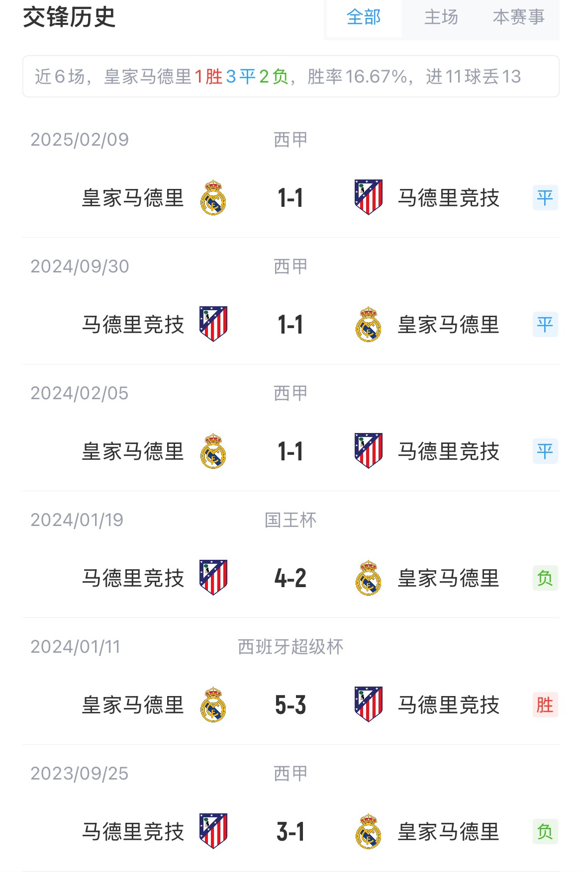 2025-03-05 07:00:51皇馬歷史共計(jì)5次在歐冠淘汰賽遭遇馬競,全部最終晉級(jí)/奪冠