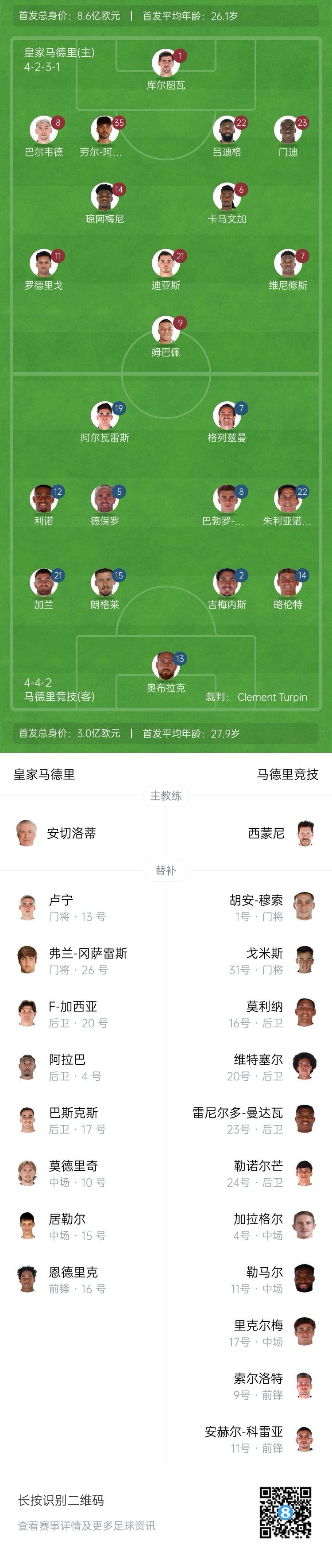 2025-03-05 07:01:23皇馬vs馬競首發(fā):姆巴佩、維尼修斯先發(fā),阿爾瓦雷斯、格子出戰(zhàn)