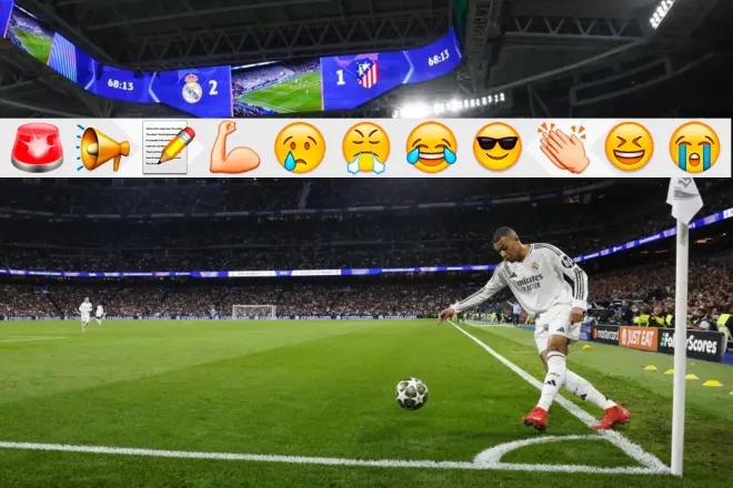 馬卡先是介紹了比賽的三粒精彩進球,隨后便開始提及姆巴佩和維尼修斯。馬卡寫道: