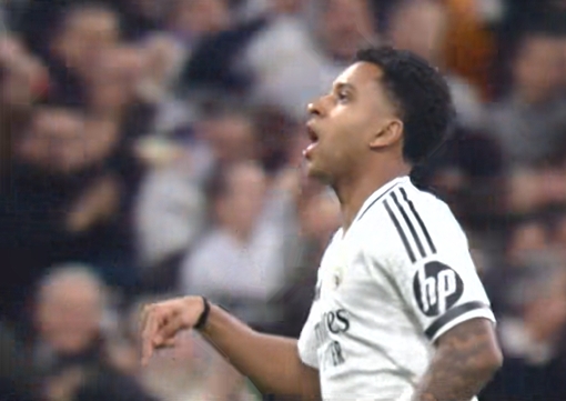 2025-03-05 13:59:37安靜!羅德里戈進球后指著袖標的15冠&手指向下,最后指胸口隊徽