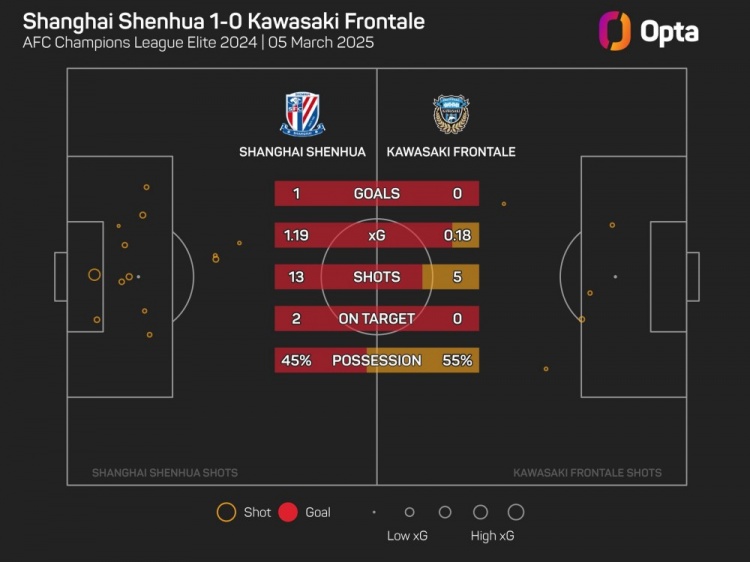 2025-03-06 00:02:41OPTA:川崎前鋒單場射門僅5次,為球隊11年來亞冠第二低