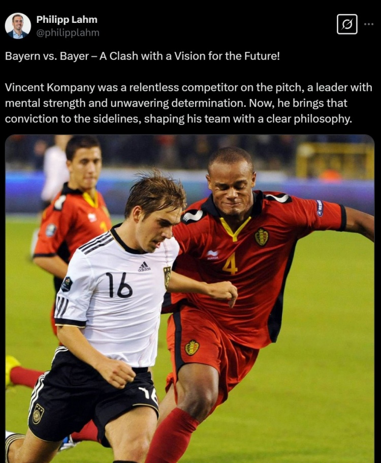 拉姆寫道:拜仁對(duì)陣?yán)瘴謳焐@是一場(chǎng)未來愿景之間的較量!在球場(chǎng)上,孔帕尼是一位不屈不撓的斗士,一位擁有強(qiáng)大精神力量和堅(jiān)定決心的領(lǐng)袖。現(xiàn)在,他將這種信念帶到了教練席,正在用清晰的理念塑造他的球隊(duì)。